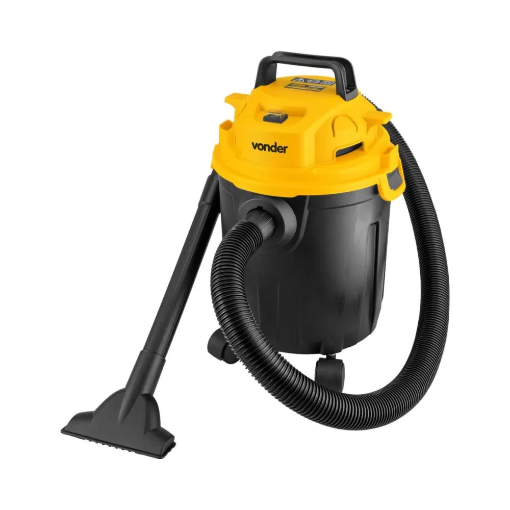 1 Aspirador de pó e líquidos. Acompanha: 1 mangueira flexível de sucção, 3 tubos extensores, 1 bocal cantos/escova, 1 bocal multiuso, 1 saco coletor de pó de pano (lavável), 4 rodízios, 1 filtro esponja e 1 filtro HEPA (Alta Eficiência em Retenção de Partículas).