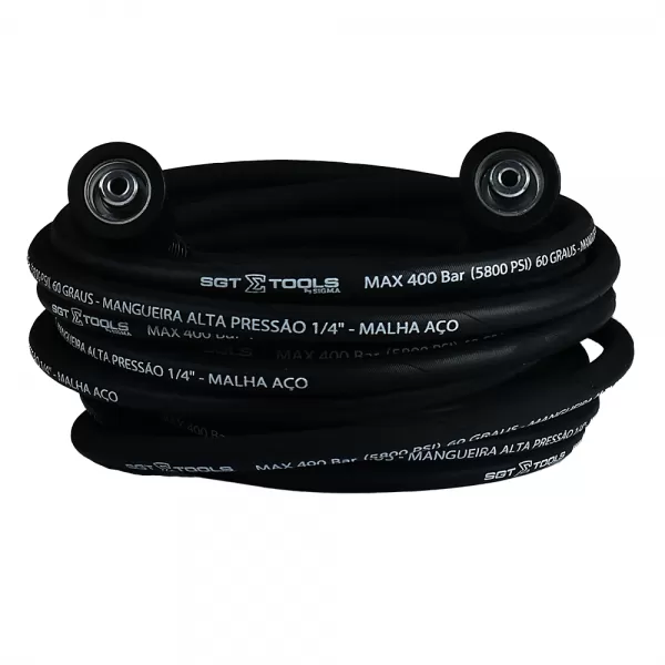 Mangueira para lavadoras de alta pressão com trama de aço