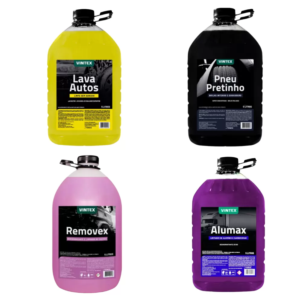 COMBO LAVA JATO VINTEX LAVA AUTO + PNEU PRETINHO + REMOVEX + ALUMAX - 5L