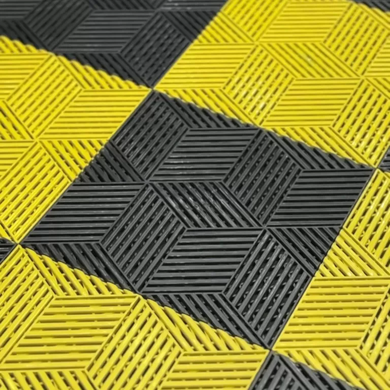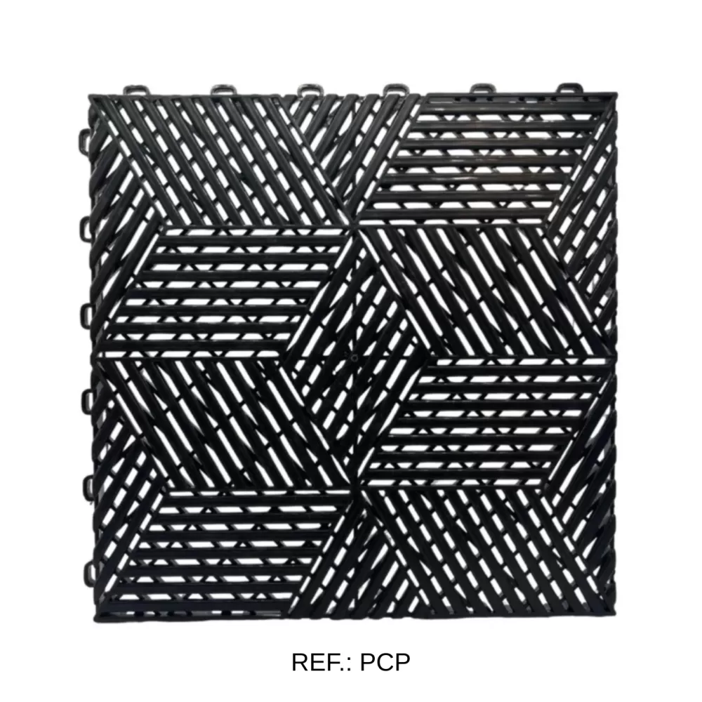 Piso modular com design exclusivo em padrão cubos, desenvolvido para alto escoamento de água e excelente aderência. Flexível, resistente e com acabamento brilhante, é ideal para áreas úmidas e ambientes automotivos. Sua montagem é simples e não requer cola ou ferramentas.