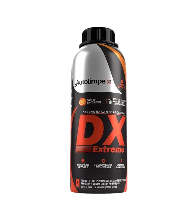 DX EXTREME 1L - Desengraxante concentrado de alta potência, perfeito para eliminar óleos, graxas e sujeiras pesadas acumuladas em motores, caixas de roda e chassi. Sua ação rápida dissolve a sujeira, deixando as superfícies preparadas para os próximos passos de limpeza ou proteção.