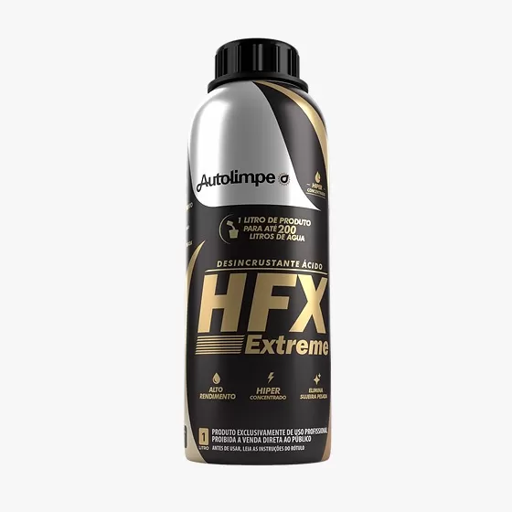 HFX EXTREME 1L - Um limpador ácido formulado para remover sujeiras minerais, ferrugem leve e manchas de água. Ideal para rodas, superfícies metálicas e locais com acúmulo de resíduos persistentes. Sua fórmula segura e eficaz garante um acabamento limpo sem danificar as superfícies.