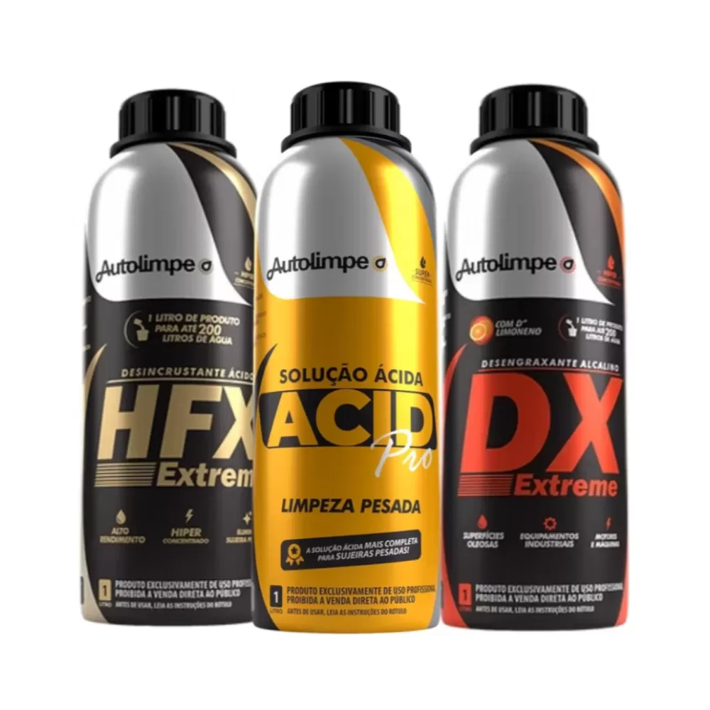 O Kit HFX DX ACID PRO Combatentes Autolimpe 1L reúne três produtos de alto desempenho para atender às necessidades mais exigentes de limpeza automotiva.