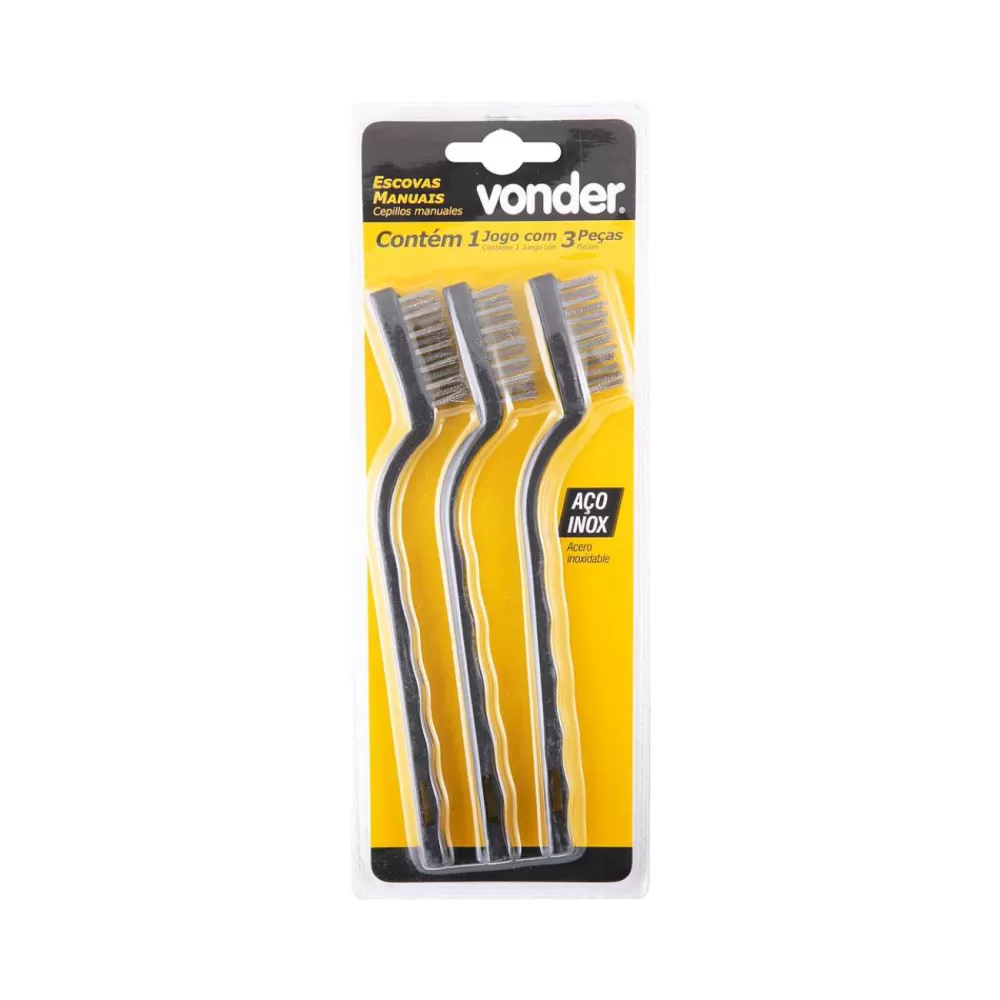 Jogo de escovas manuais em aço inox com 3 peças VONDER
