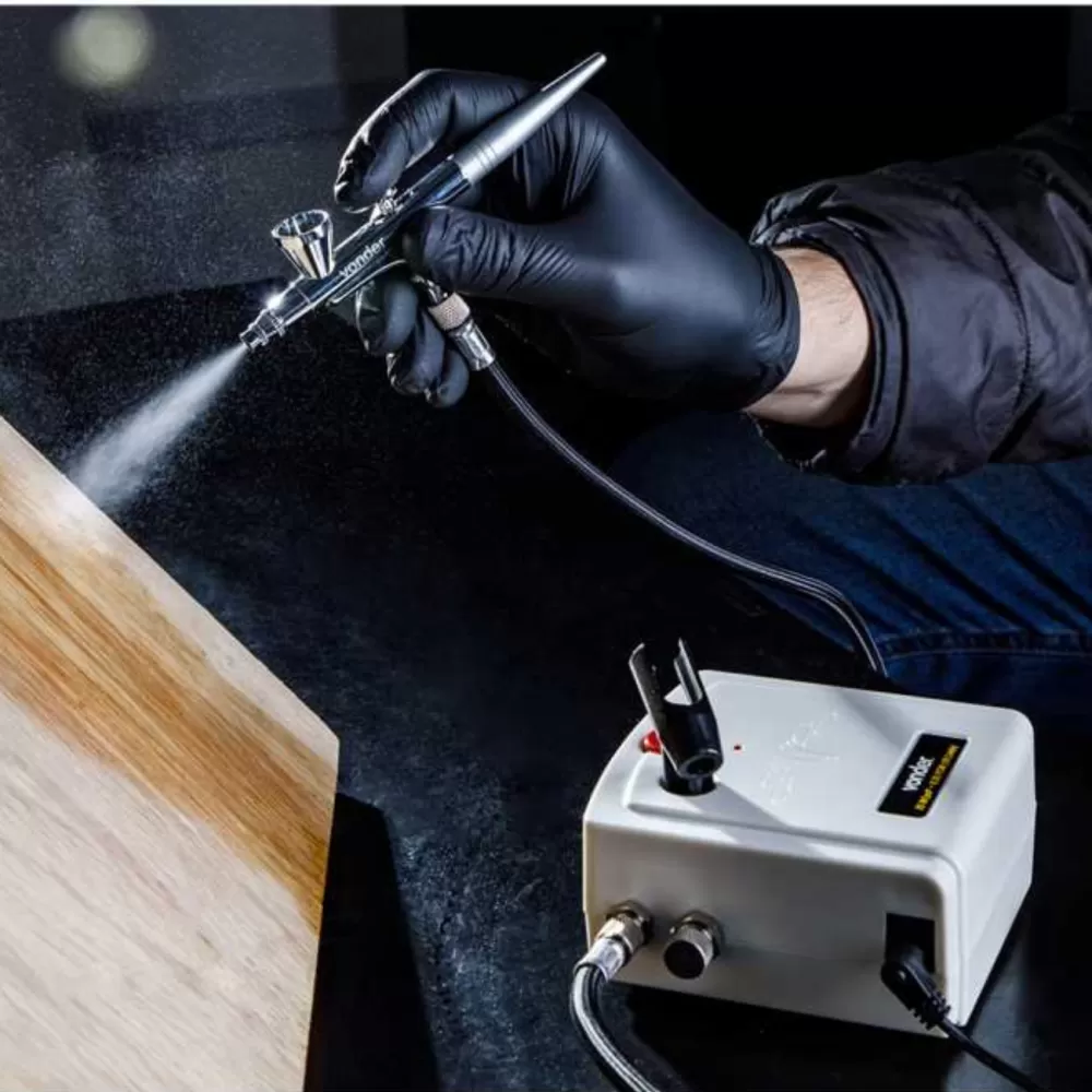 Indicado para trabalhos artesanais e atividades que exijam precisão e qualidade, como: micropinturas, retoques, personalização de veículos, capacetes, tanques de motos, entre outros. Já acompanha minicompressor. Pode também ser utilizado com produtos alimentícios e outros. Tais como: culinária, confeitaria, pinturas corporais, maquiagem. Pronto para uso, pois já acompanha um minicompressor e vários acessórios, conferindo inúmeras possibilidades de trabalhos com excelente precisão e desempenho.