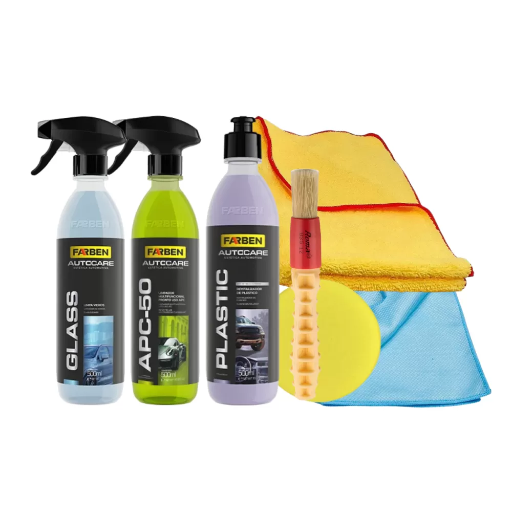 KIT FARBEN APC 500ML + RENOVA PLASTICO 500ML + LIMPA VIDRO GLASS 500ML + ACESSORIOS