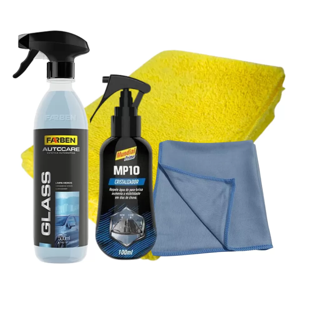 KIT GLASS LIMPA VIDRO 500ML + CRISTALIZADOR 100ML + MICROFIBRA 40X40CM + TOALHA VIDRO 38X38CM