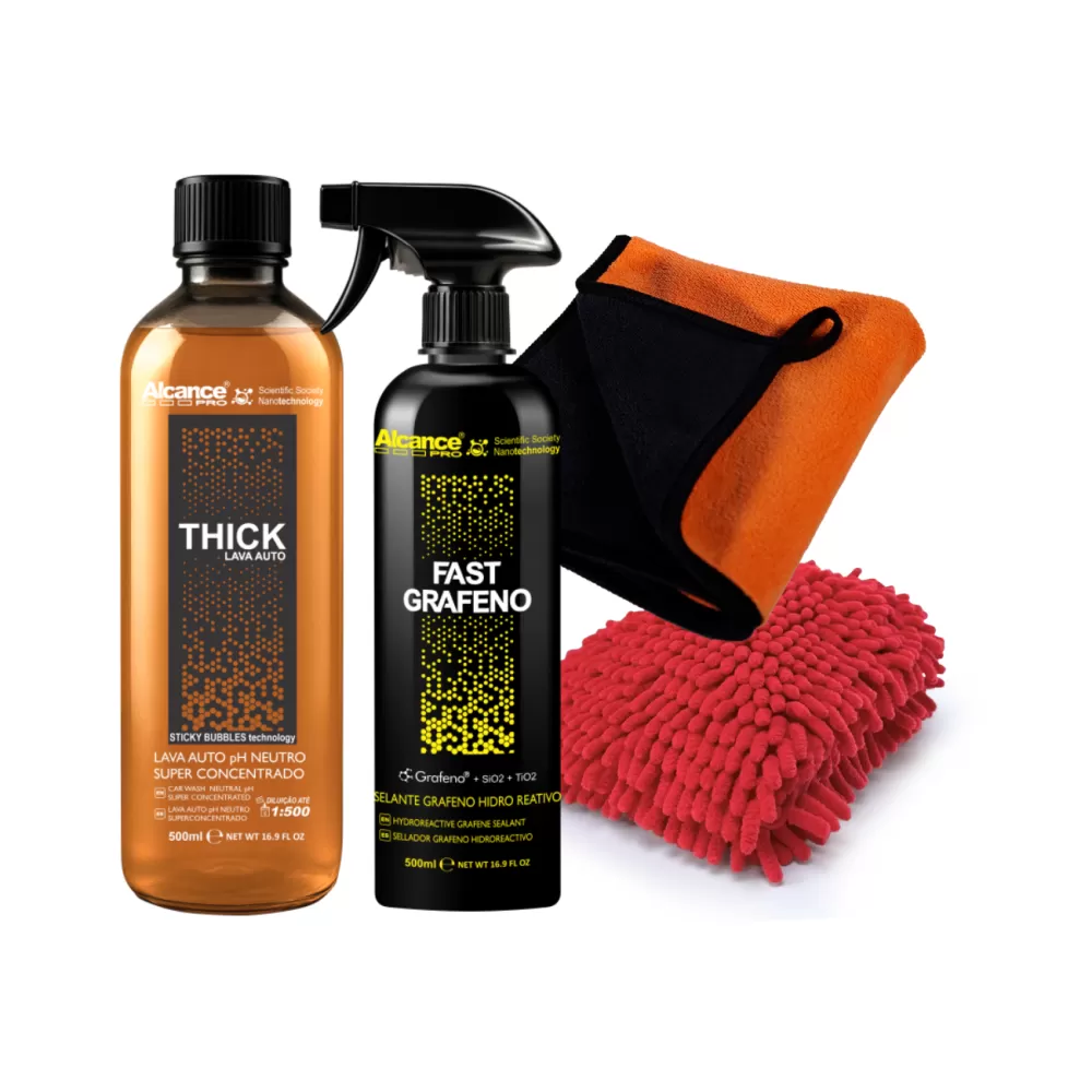 KIT LAVA AUTO THICK 1:500 + FAST GRAFENO 12 MESES + LUVA + TOALHA 2 LADOS 660GSM