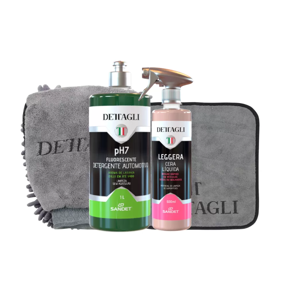 KIT CERA LEGGERA 500ML + LAVA AUTO FLORESCENTE 1L + LUVA + MICROFIBRA DETTAGLI